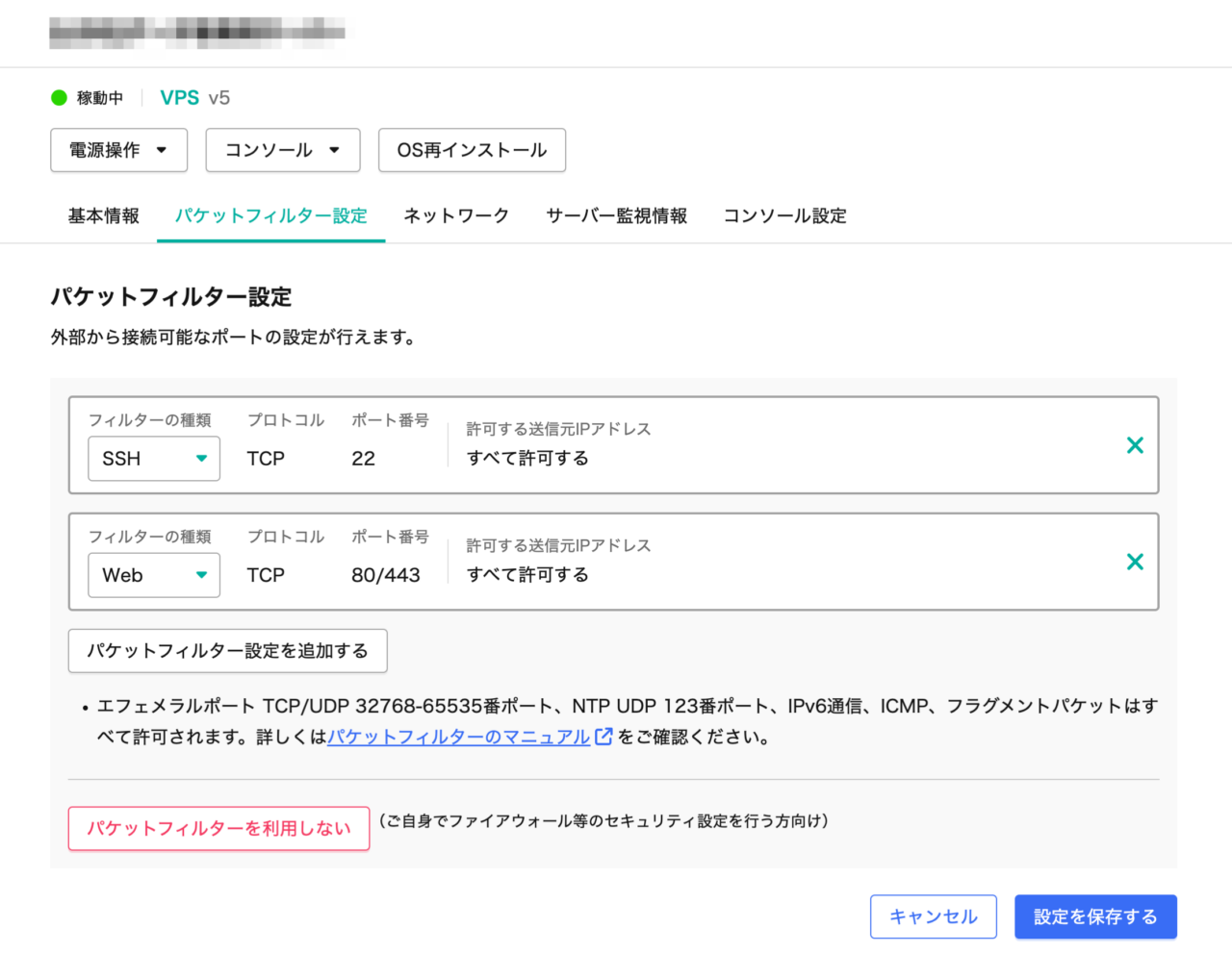 さくらVPSでApacheやFTPが接続できない – パケットフィルター